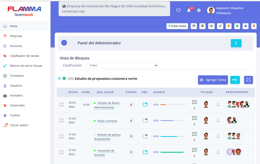 Flamma es un poderoso gestor de tareas y de trabajo colaborativo que te permitirá asignar las tareas y recibir solicitudes de recursos de tu organización, ver la carga de trabajo individual y el flujo de recursos en tiempo real.